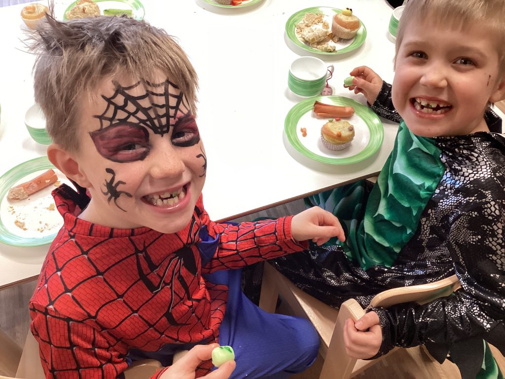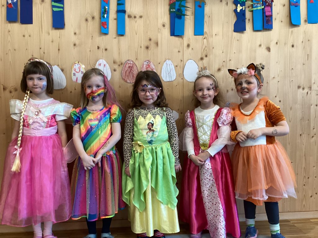 Die ganze Woche durfte jeder der Lust darauf hatte kostümiert in die Kita kommen. Montag und Dienstag durften sich die Mädchen und Jungen sogar passend dazu schminken oder sich ein Glitzertatoo verpassen lassen.