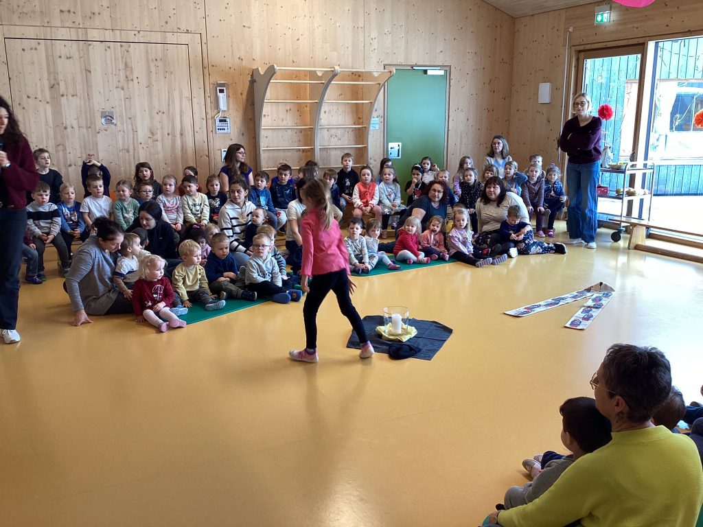 Die Krippenkinder genossen dann gesunden Saft und die Kindergartenkinder lutschen vorsorglich ein Hustenbobon.