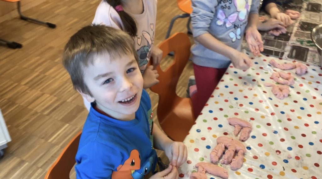 Nicht stures Pauken sondern Freude und Spaß am Lernen war auch hier die Devise. Mathe wurde an lustigen Stationen vertieft und Anlaute wurden kennengelernt , dann gestickt und geknetet um sie erfahrbarer zu machen.