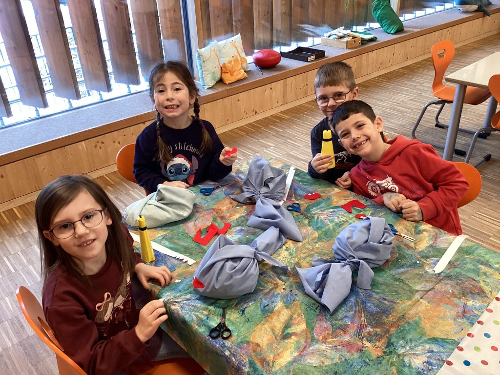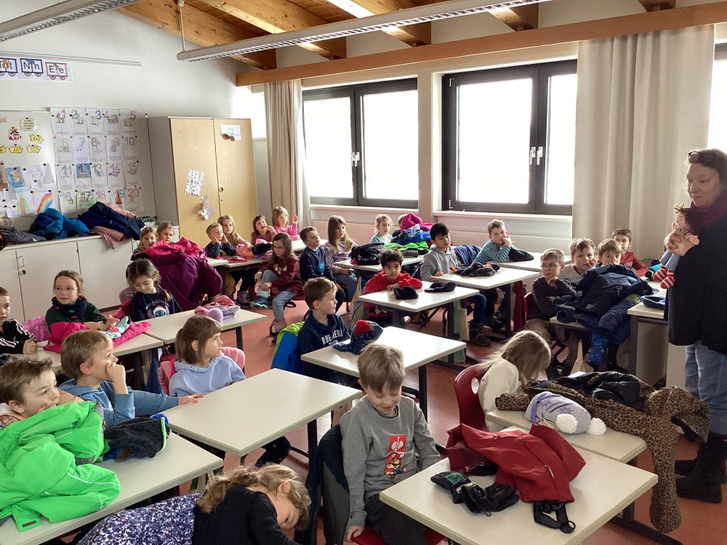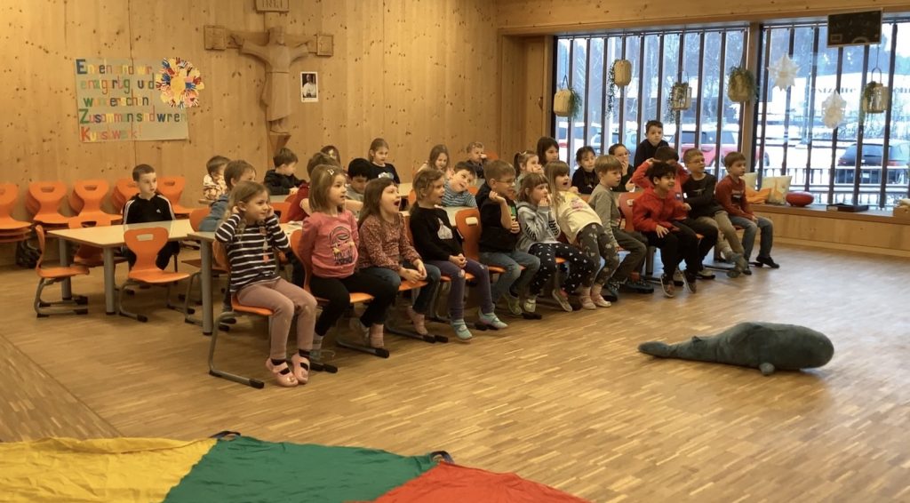 Besonders viel Spaß hat die Kinder auch als sie die Geschichte „Haiferien“ hörten, sich das Ende aber selbst in Gruppenarbeit ausdenken durften. Dass diese fiktiven Enden sogar besser waren als das Eigentliche, versteht sich ja von selbst!