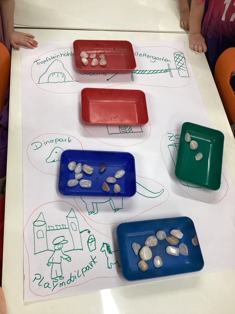 Wie „richtige“ Schule war auch das ganze Vorschulprojekt aufgebaut. Es gab Einheiten im sprachlichen Bereich, im mathematischen Bereich, in HSU und natürlich in der Bewegung.