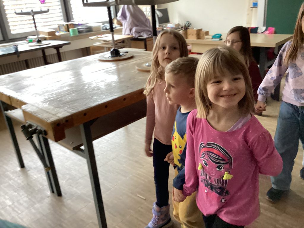 Die lustigen Haie begannen ihr Vorschulprojekt gleich mit etwas ganz Besonderen: Einem Besuch der Schule. Die Koordinationslehrerin Frau Apfelbacher begleitete die Mädchen und Jungen und zeigte ihnen nicht nur die Klassenzimmer sondern auch das Sekreteriat und die Fachräume. Bei Frau Braun trafen sie im Unterricht sogar auf alte Bekannte!