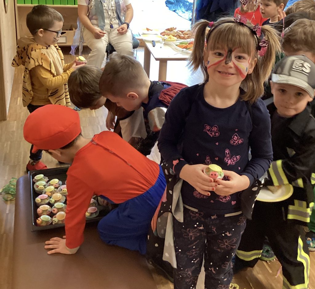 Als die Eltern mit Helau verabschiedet wurden ging es natürlich in den Gruppen noch fröhlich weiter: Bei Gemüsekrake und Wiener-Oktopus wurde geschmaust bevor die Party in den Gruppen weiterging!