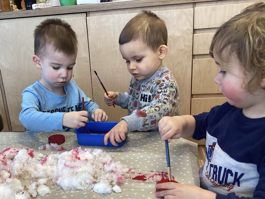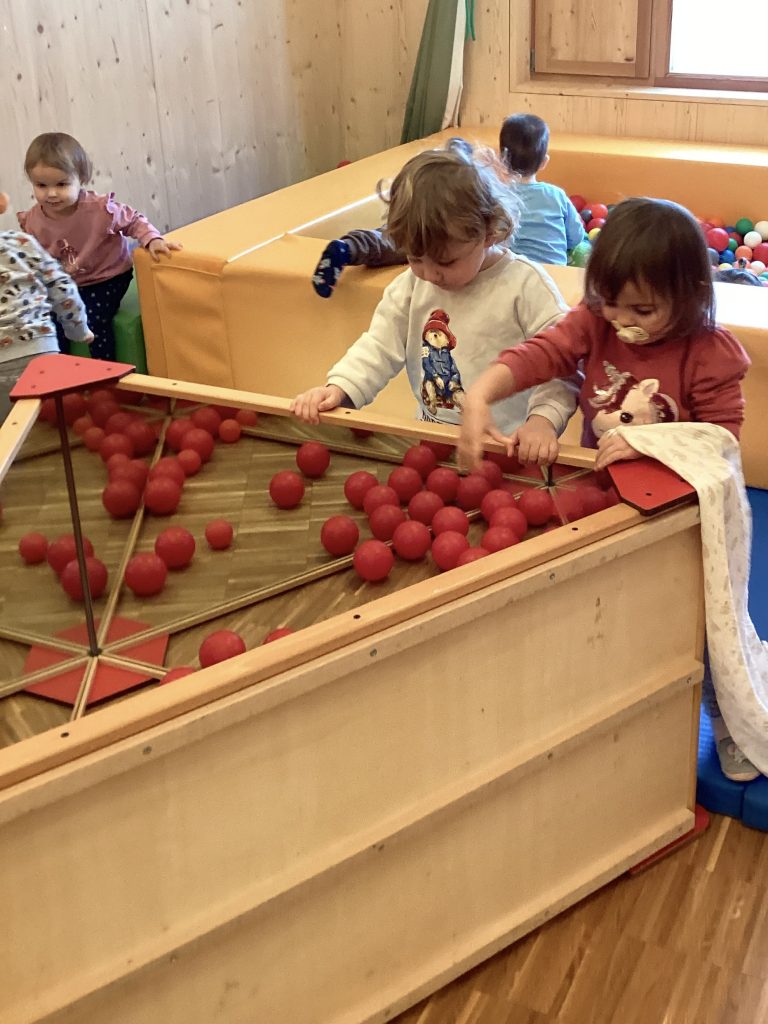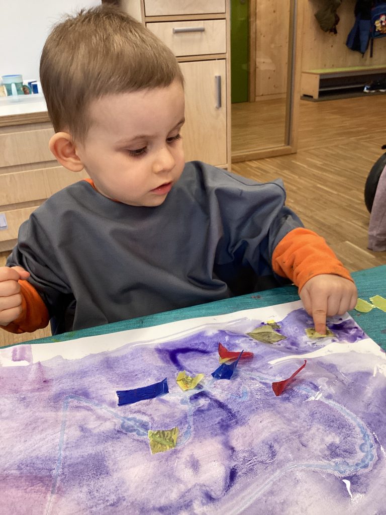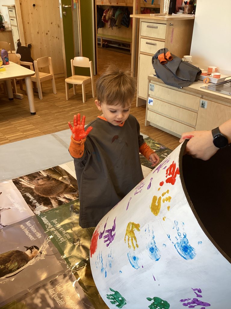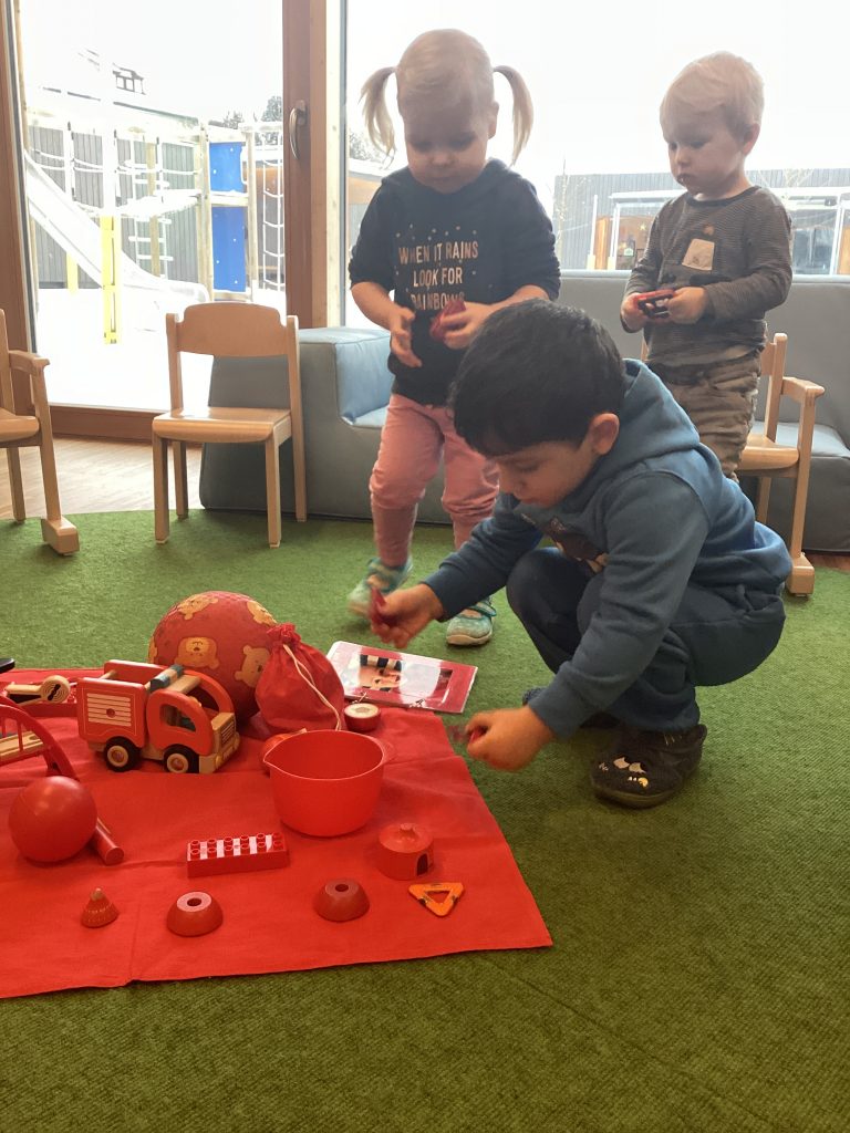 Farben sind wirklich überall, merkten die Krippenkinder. Ganz intensiv beschäftigten sie sich in diesem Projekt mit den Grundfarben. Unglaublich wie viele rote Bälle alleine bei uns zu finden sind. Und wie viele Dinge noch in Rot bei uns versteckt sind. Wie Farbdetektive waren die Jungen und Mädchen unterwegs und sammelten alles was in rot zu finden war. Und später dann  Gelb und Blau.