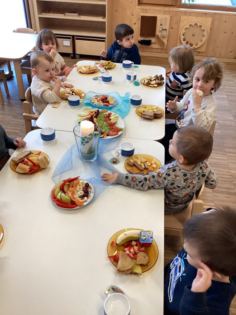 Und zum Abschluss des Projektes gab es dann sogar noch Farben zum Essen: Ein bunter Regenbogen aus Paprika, Heidelbeeren und vielem mehr. Lecker!