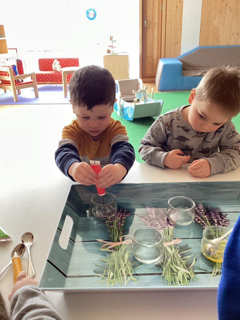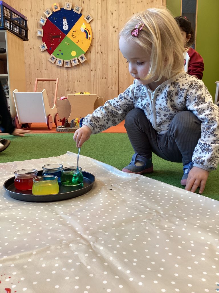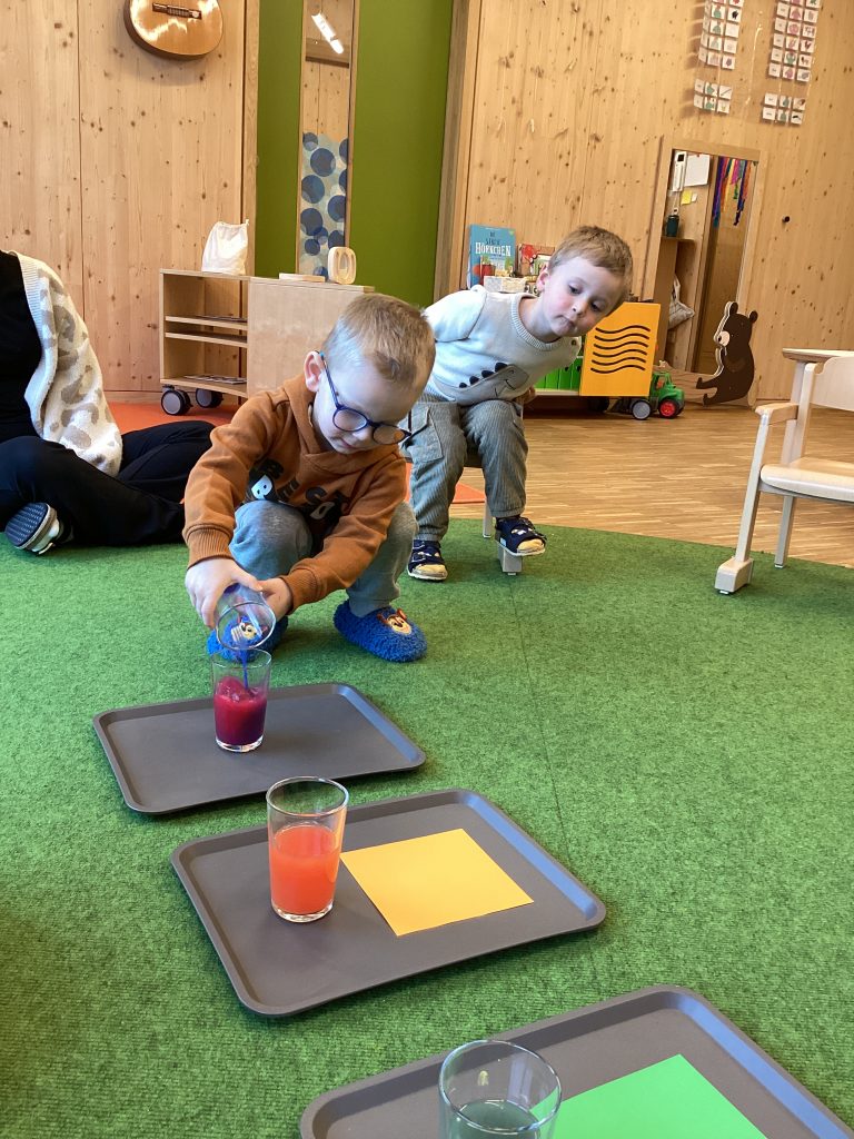 Ganz langsam kamen dann weitere Farben hinzu, diese entstanden tatsächlich aus den ersten drei Farben, wie die Kinder bei spannenden Experimenten heraus fanden.