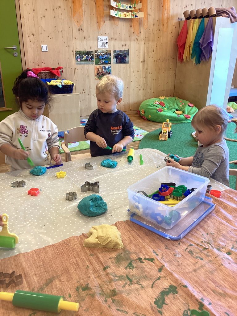 Selbst gemachte Knete zu färben macht auch viel Spaß! Und wenn man dann von der Firma Kurzendorfer große Röhren geschenkt bekommt, versteht es sich von selbst dass diese auch noch von Kinderhand bunt verziert werden bevor sie im Parcours zum Einsatz kommen!