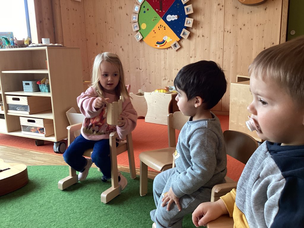Im Nachmittagsangebot „Musik“ entdecken wir die Welt auf musikalische Weise. Nicht nur die auditive Wahrnehmung spiel eine Rolle denn wir aktivieren ALLE Sinne und lernen schrittweise neue Lieder und Instrumente kennen. Auch unser eigener Körper kommt hier als Instrument zum Einsatz!.