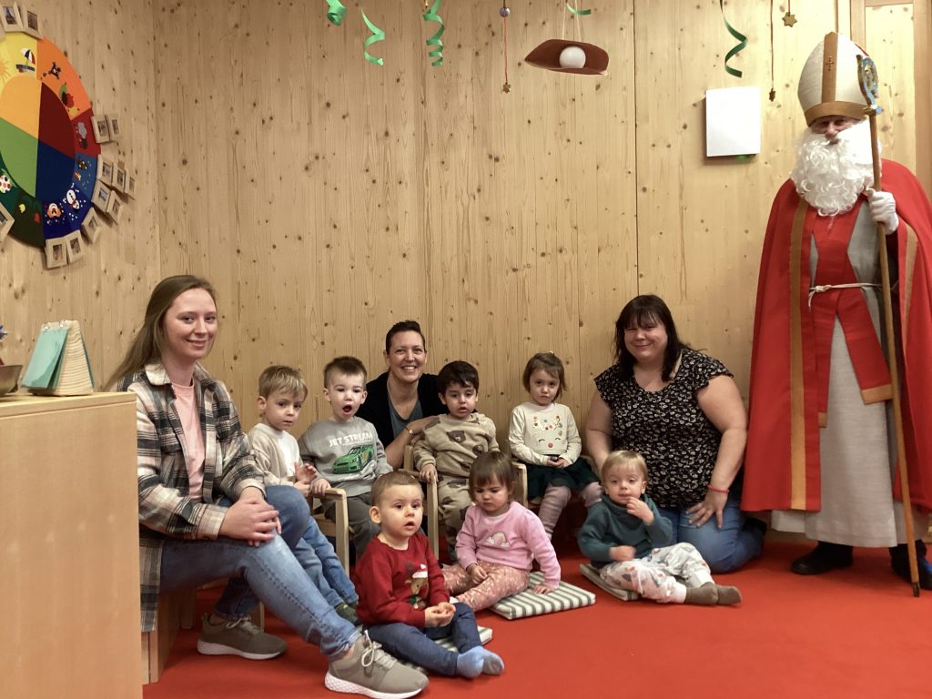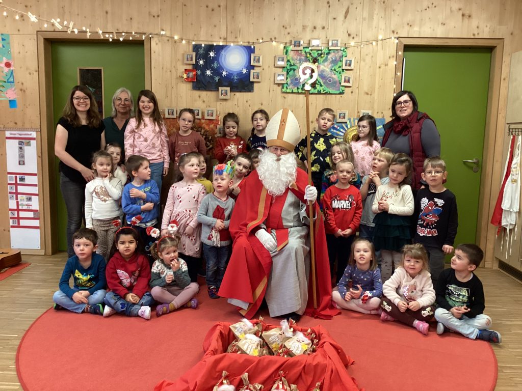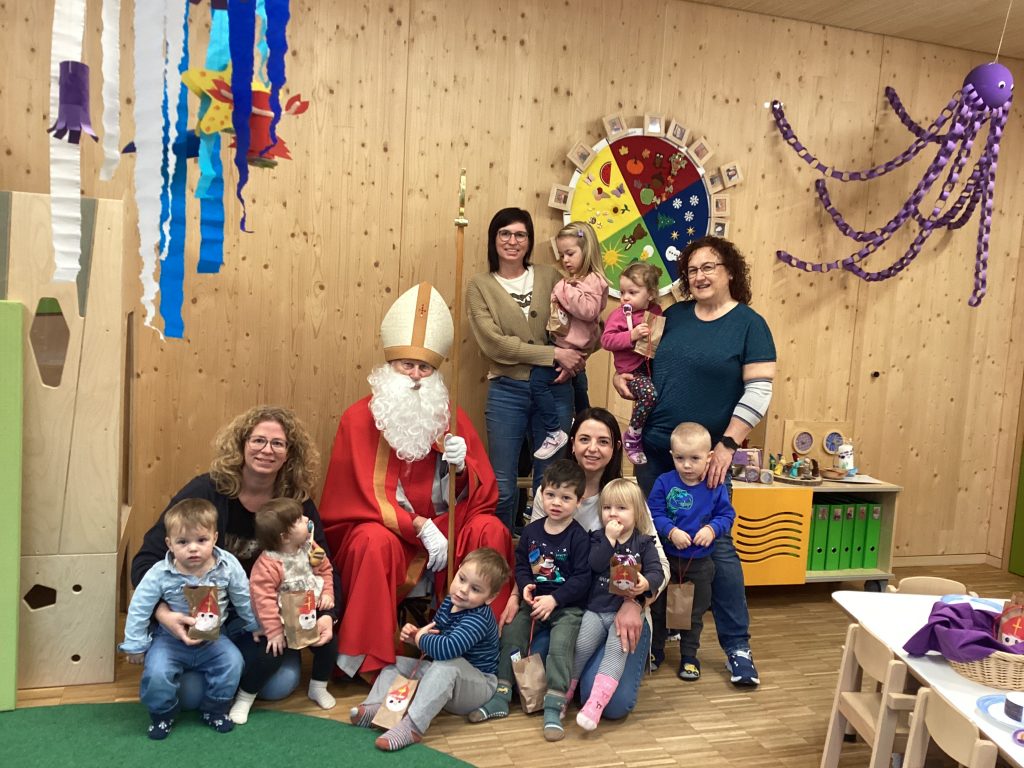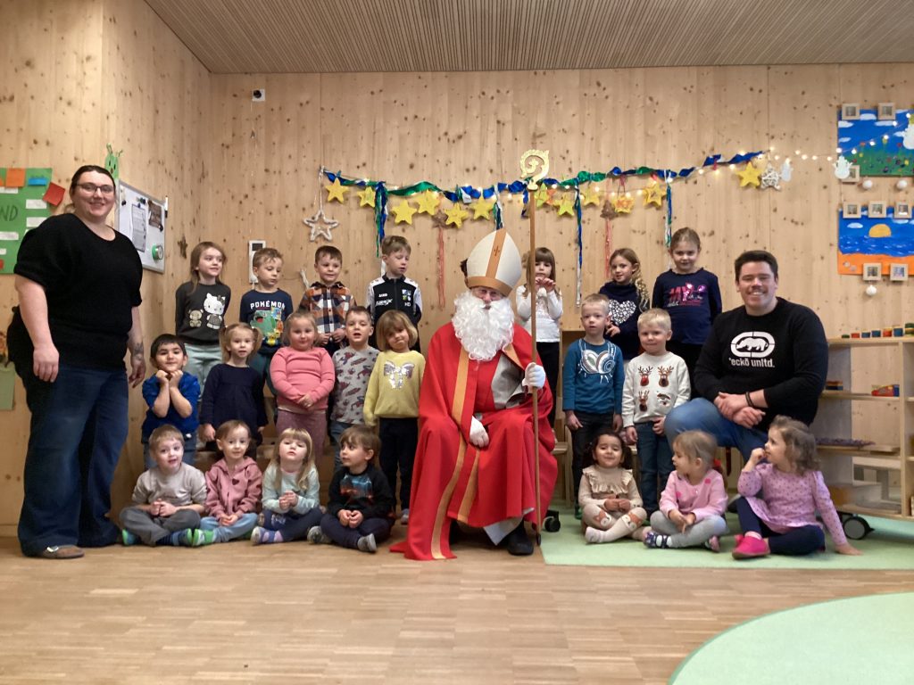 Und danach besuchte Nikolaus noch alle drei Krippen- und die vier Kindergartengruppen und hatte die Tütchen dabei welche die Kinder selbst gebastelt hatten.