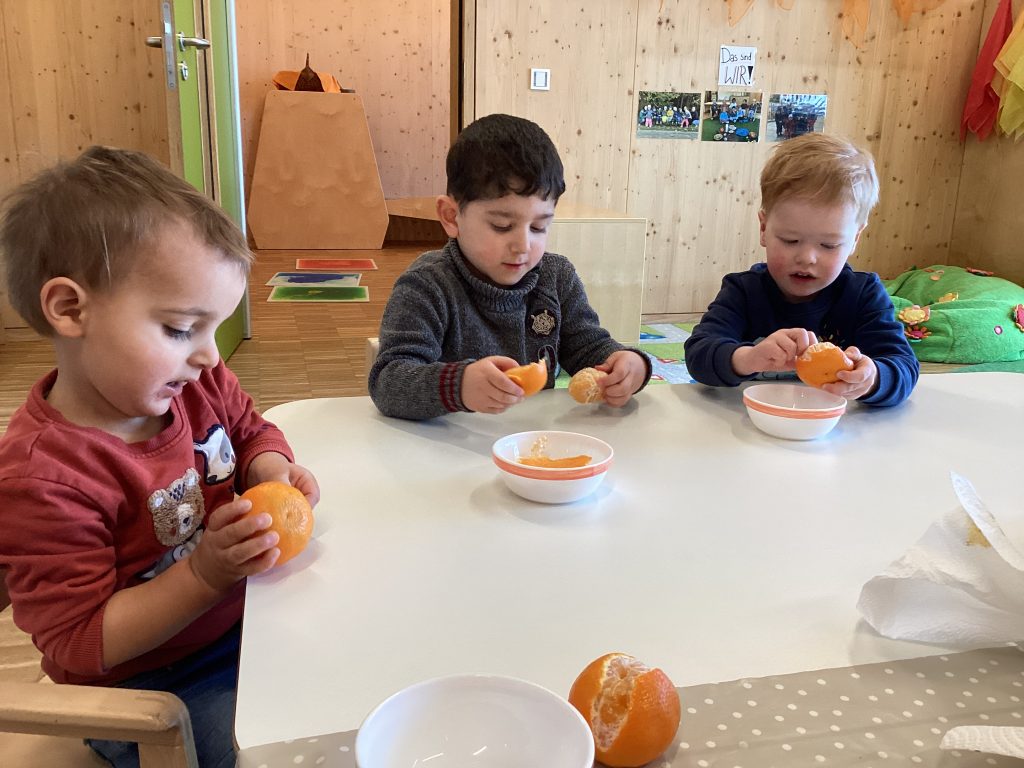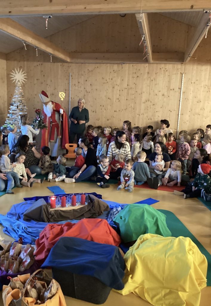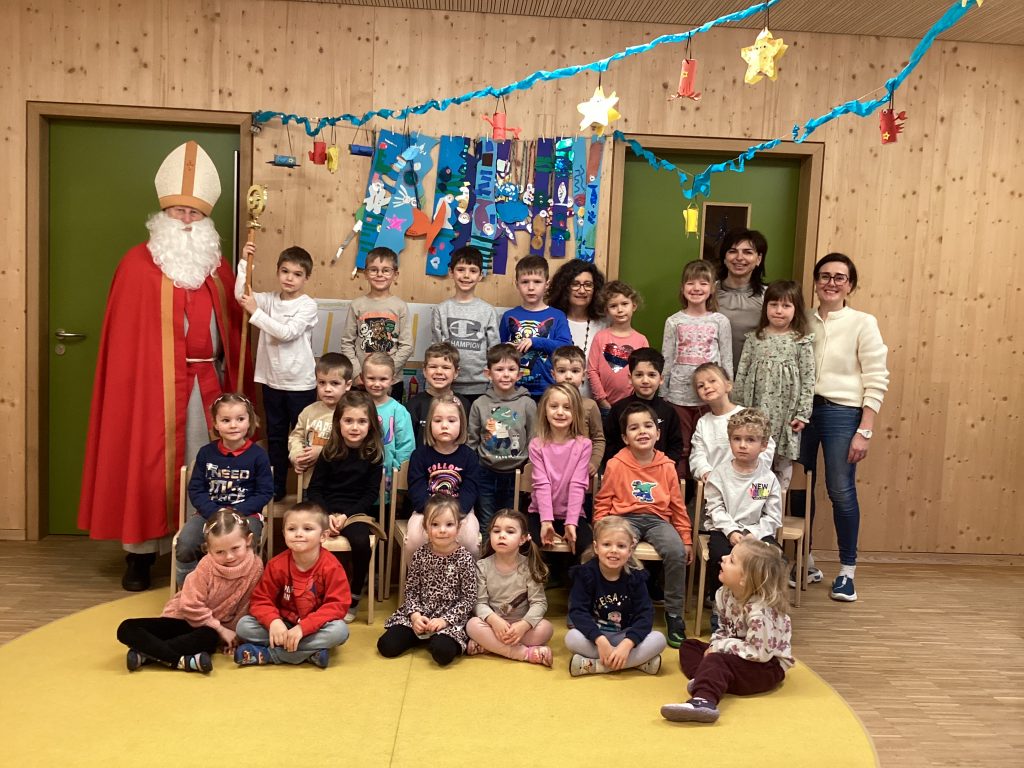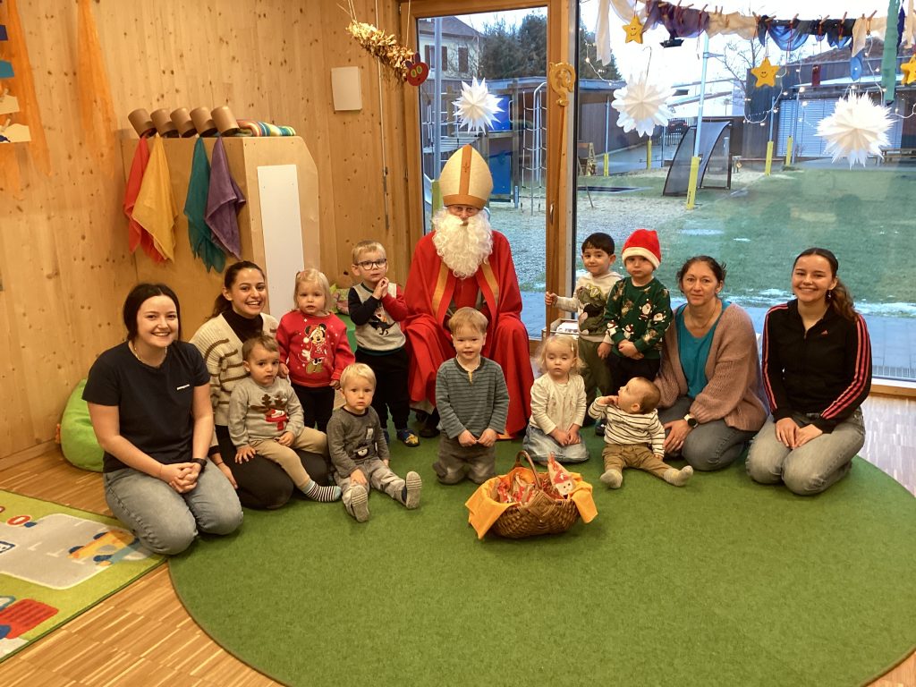 Und danach besuchte Nikolaus noch alle drei Krippen- und die vier Kindergartengruppen und hatte die Tütchen dabei welche die Kinder selbst gebastelt hatten.