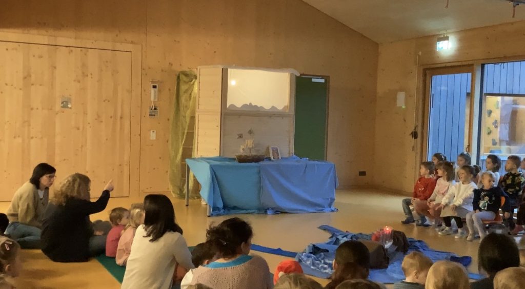 Die Geschichte selbst, wurde per Schattentheater erzählt und mit Musik begleitet, was die großen und kleinen Kita-Kinder mit großen Augen und Ohren verfolgten.