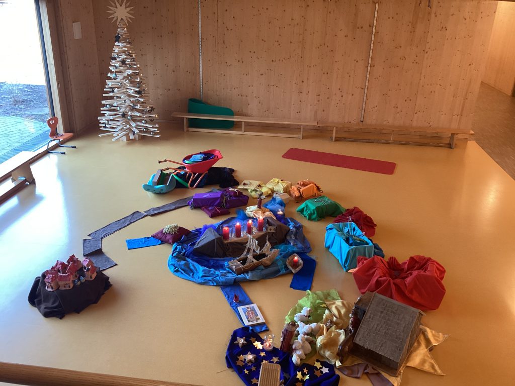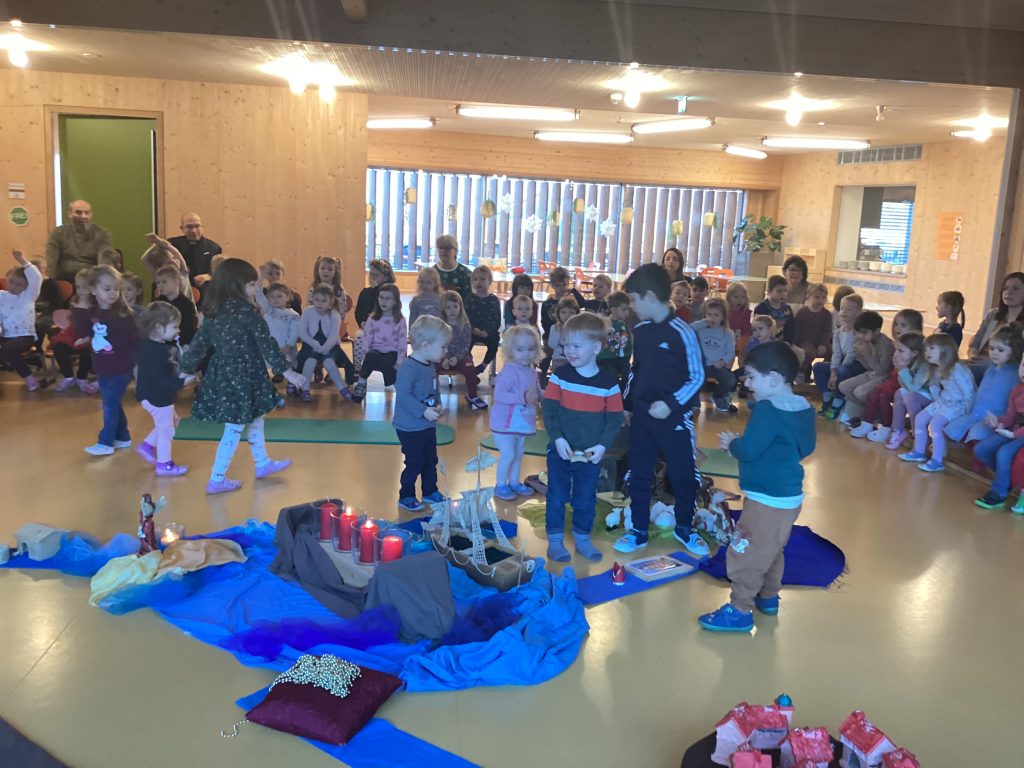 Gemeinsam brachten die Kinder die vielen Schafe der Hirten zur Mitte und ließen die Sterne am Nachthimmel erscheinen….