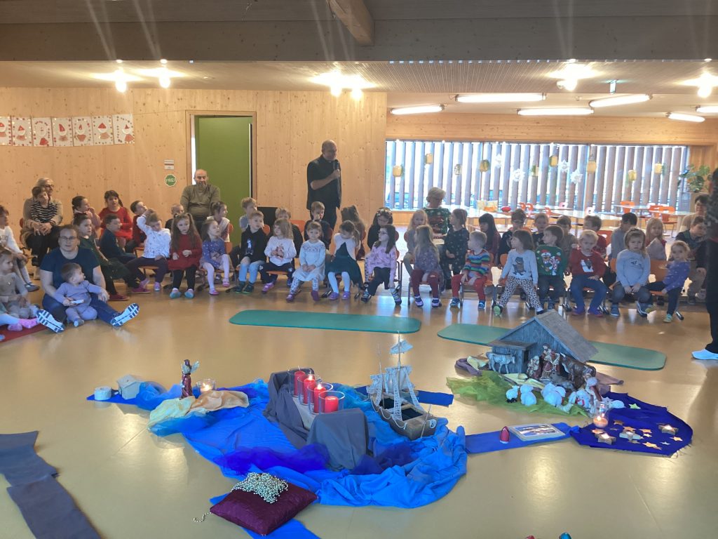 Und endlich war es soweit: Mit großen Augen verfolgten die Kinder die  Erzählung von Maria und Josef die keinen Platz in einer Herberge fanden und letztendlich zu einem Stall ziehen mussten!