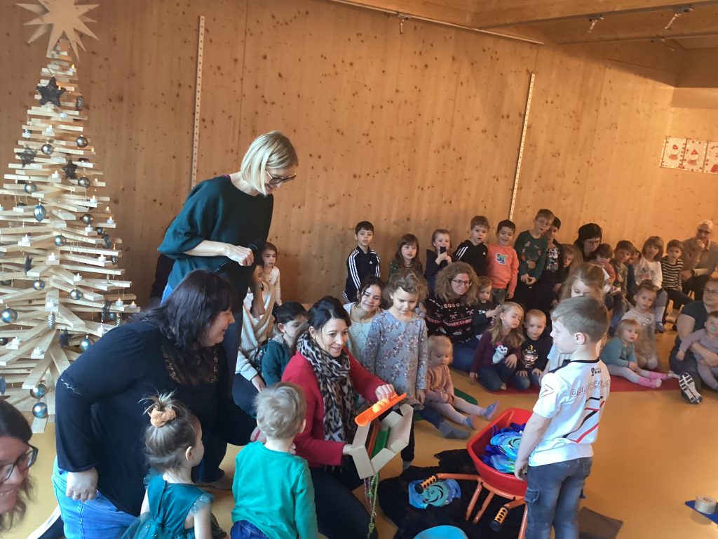 Und Geschenke gab es auch für die Kinder der Kita: In den Gruppenfarben eingewickelt, waren einige Päckchen unter dem Weihnachtsbaum zu finden.