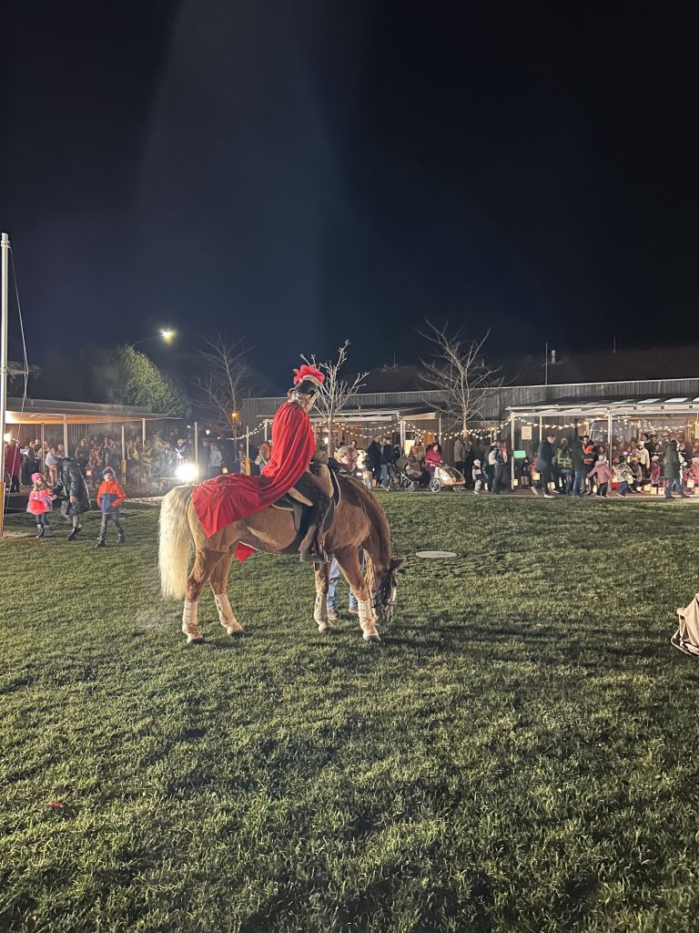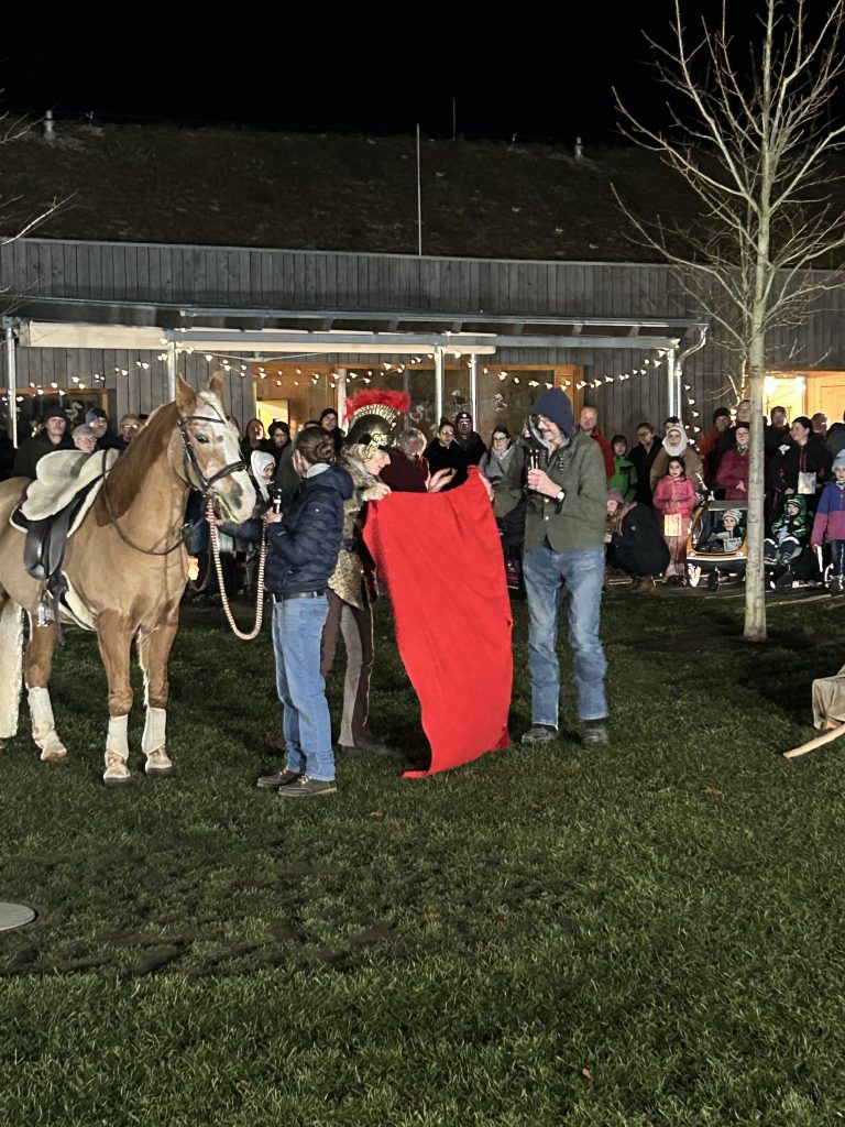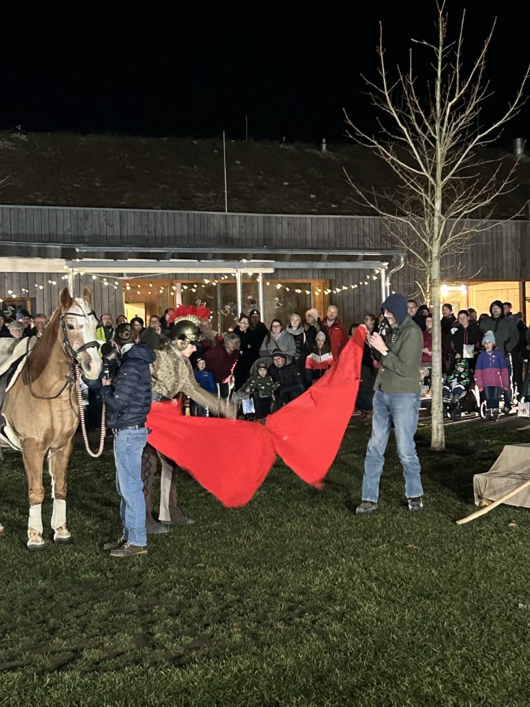 Als alle einen Platz gefunden hatten, staunten die Kinder, wie ein echter Martin vom Pferd stieg und seinen Mantel mit dem teilte der ganz unten saß.